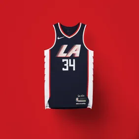 The Clippers moved from San Diego to Los Angeles in 1984, intersecting with the city's hosting of the Summer Olympics. The red, white and blue Clippers logo is designed to resemble the "Stars In Motion" logo from the ’84 event, commemorating the team's inaugural city in Los Angeles. Additionally, the jersey pays tribute to the longtime "Voice of the Clippers," Ralph Lawler, in his 40th and final season with the team.