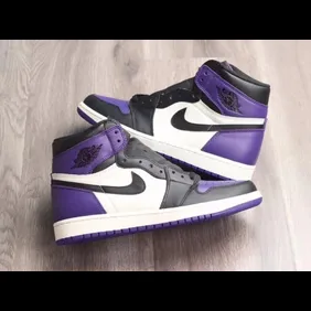 Among the upcoming Air Jordan 1s is a new "Court Purple" rendition which utilizes the familiar color-blocking seen on the "Bred" Air Jordan 1, except a vivid purple replaces the traditional hits of red on the toe box, heel and outsole.
