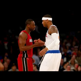 In 10 games with Houston this season, Melo is averaging a pedestrian 13.4 points and 5.4 rebounds in a career-low 29.4 minutes per night, but he's certainly not the reason why the team is just 5-7 thus far. Still, it appears as though his days in H-Town are numbered and that isn't sitting right with his good friend Dwyane Wade.