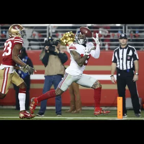New York Giants Pro Bowl receiver Odell Beckham Jr. brought out the "Bright Lights" colorway of his Nike Vapor Untouchable Pro 3 OBJ Uptempo cleats for Monday night's game in San Fran, and the special edition spikes got plenty of air time. Beckham went off for two touchdowns (on four receptions for 73 yards) in the Giants' 27-23 win over the Niners in prime time.