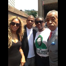 Beyonce and Jay Z wore "I Am Trayvon" bracelets as they supported the rally, and Bey also posted a message on her website urging people to sign the petition for the Justice Department to open a civil rights case against Zimmerman.