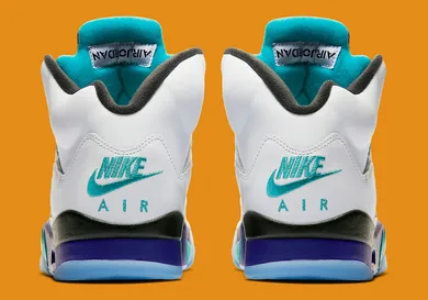 The beloved "Grape" Air Jordan 5s are returning to retailers later this month with some subtle modifications as a nod to the Fresh Prince of Bel-Air. While the kicks will still feature the familiar white leather upper accompanied by hits of emerald green, purple and black, this time around they'll come without laces.