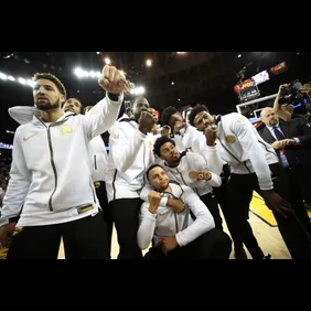 As part of the "ring night" festivities, the Warriors players, coaches and staff also watched as their last championship banner was raised into the rafters at Oracle Arena. While the Warriors may very well have more rings and banners in their future, this is the last time they'll be celebrating at Oracle, as the team will move to Chase Center in San Francisco next season.