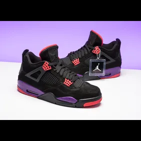 Next up is the Toronto Raptors inspired Air Jordan 4 that is now confirmed to release on Saturday, August 18. Just like the "Raptors" Air Jordan 7 that released in 2012, this upcoming sneaker features a black nubuck upper accompanied by hits of red and purple which is more in tune with their classic dribbling dino logo.
