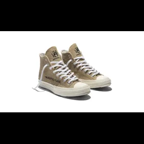 Dubbed the "Burlap Pack," Tyler's upcoming Converse Chuck 70 sneakers are designed with a burlap and vintage parchment canvas upper and asymmetrical GOLF le FLEUR* print. The burlap upper is also added to the signature GOLF le FLEUR* One Star. Additionally, this aesthetic carries over to the capsule’s accompanying apparel, an open-weave fabric anorak in "Curry" and "Natural" colorways.