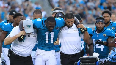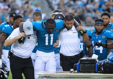 The Jacksonville Jaguars walked away with more than just a 14-7 preseason win against the Atlanta Falcons on Saturday Night. The team lost their number one receiver in the first quarter of play. Marqise Lee was gunning down the middle of the field with the ball in his hands when he collided with Atlanta's safety Damontae Kazee, his knees buckled immediately. Replays show that Damontae had lowered his helmet in anticipation of contact, a decision that cost his team yardage on the play, and the Jaguars their best offensive player for an indeterminate amount of time (and the rest of the game).