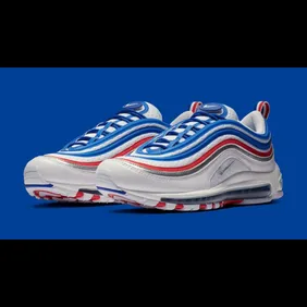 As seen in the official images provided by Nike, the "All Star" Air Max 97 features a combination of white leather and a jersey-like mesh on the upper accompanied by red, blue and metallic silver trim. Additional details include removable velcro Nike swoosh branding on each tongue and special edition insoles honoring the '91 uniforms.
