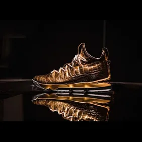 The one of a kind kicks, valued at more than $100,000, were created in celebration of LeBron James reaching the 30,000 point milestone for his NBA career. As the "Diamond and Gold" name suggests, the special edition LeBron 15s are built on an all-gold design, accompanied by diamond accents on the lace tips and "30K LJ" hangtag.