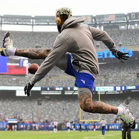 Before the New York Yankees hosted the Boston Red Sox Friday night ahead of their big 3-game divisional series this weekend, the Bronx bombers allowed NY Giants wide receiver Odell Beckham Jr. to grab a bat and take some batting practice with the players before the game. And to our surprise, the Pro-Bowl wide receiver could rake. In fact, OBJ showed off some insane power and actually went yard, hitting a home run over the fence in left field. Following the homer, fans and players erupted in cheer, while Beckham did a quick little dance and shook his hips before getting back in the batter’s box with a wide grin on his face.