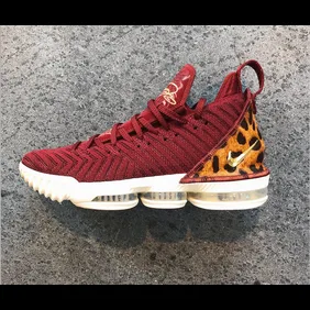 According to Bleacher Report, LeBron will be lacing up a wine and gold, cheetah-printed version of the LeBron 16 when the Lakers take the court against the Portland Trail Blazers for Game 1 of the 2018-19 NBA season. Dubbed the "King" LeBron 16, the insoles feature an image of LeBron sitting on a throne wearing his first Nike signature, the Nike Air Zoom Generation.