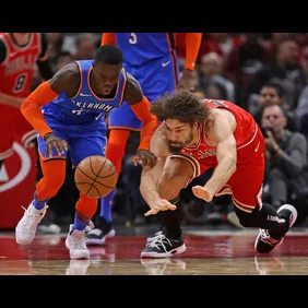 The Bulls traveled to Oklahoma for what would be a brutal beating. During the third quarter, Kris Dunn started a melee by shoving Russell Westbrook. A foul was called on an unrelated play, and Westbrook can be seen pushing off Dunn defensively. Dunn struck back with vengeful force, prompting Westbrook to step back. Jerami Grant runs up and pushes Dunn, and then Robin Lopez grabs Grant and the two began to wrestle before being torn apart by coaches and staff. Ultimately, Westbrook pulls Grant out of the tussle and the two walk off with subtle smirks as Lopez storms off in the other direction.