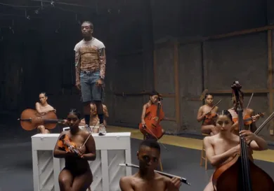 Now that Uzi's retirement from hip hop is officially over and fans await Eternal Atake, his "That's a Rack" visual looks as if it's taking an artistic nod from Kanye West's "Runaway." In Uzi's latest visual, he's the only man featured as women support his artistic vision throughout various scenes. In one, he stands atop a piano in a room filled with naked women who are only covered by musical instruments. In another scene, he performs as nearly nude women, who are smeared with blue paint, dance and pose; and in the last, he and his lady friends stand in a room of mirrors. It will be interesting to see how Uzi follows up this release, but fans are certainly excited to see him back in the game.