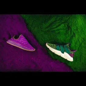 Official images of Cell's sneaker were recently revealed, showcasing a green, knit upper on the Adidas Prophere, highlighted by a spotted pattern that mirrors Cell's skin, while the purple and navy blue accents further the ties to the character's look. The Prophere will release alongside a purple "Son Gohan" Adidas Deerupt.