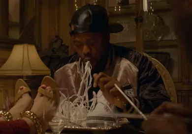 Every week Open Mike Eagle features a new musical collaboration for Comedy Central's The New Negroes. Last week, OME and Father questioned the hype around being "lit" at parties, and now he's back with Method Man as the pair rap all about gluttony. The music video for "Eat Your Feelings" features OME, Meth, and a few friends—including Buzzfeed comedian Quinta Brunson—as they over-indulge on their choice of delicacies. No, they're not stuffing their face with expensive foods; they're feasting on luxury items including clothing, jewelry, fragrances, rare sports memorabilia, grillz, and the like.