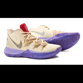 The special edition Kyrie 5s are inspired by the point guard's Hamsa tattoo, featuring a beige colorway that references ancient pyramids as well as hieroglyphics detailing.