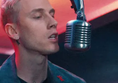 The video shows MGK in a room with his team members with a highlight placed on himself and his tattooed drummer. Kellz rocks out on the guitar at the end, marvelling at how he made it from the trailer park to Saks 5th.