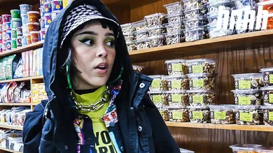 Leave it to Doja Cat to randomly find snacks that match her outfit, amirite?? The multihyphenate grabs Takis Fuegos, which feature the exact colour scheme of her 'fit, and she quickly brings us back to her youth as she rips open the bag. "I used to eat these...Kids used to sell these on campus, and everybody would just be fiending for these. And I'm surprised I didn't get sick. I guess kids' stomach are stronger. People go to the hospital for things like this," she says, before detailing she also loves hot fries.