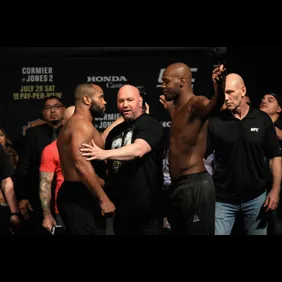 Jones, 31, defeated the 39-year old champion by unanimous decision in their first bout back at UFC 182 in January 2015. Jones also won the rematch at UFC 214 by way of third-round knockout, but the result was ruled a no-contest due to Jones' failed drug test.