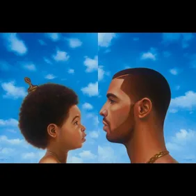 From what the rapper has said of the packaging, it seems as though the two images will serve as the front and back cover of the album, and will be placed facing one another in stores. "When it's positioned on the shelf at whatever store you go to, if they do it as I've asked, you'll see that it's a child version of myself staring at myself now," said Drake.