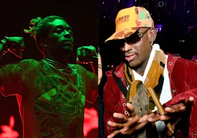 Dennis Rodman kicking with Lil Uzi Vert on a musical tip - on appearances it makes too much sense. Make it so, make it so. So, it turns Rodman fell in love with hip-hop after attending Rolling Loud where he group selfie'd his rendezvous with Quavo, and iconoclasts Lil Yachty, and Mike Tyson, who is himself a fan of contemporary hip-hop I would imagine.