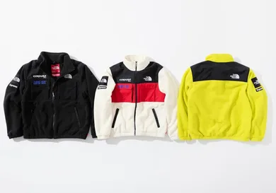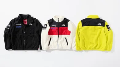 Today's Supreme x The North Face capsule collection consists of an Expedition Fleece Jacket and Expedition Pant, all of which will be available in three colorways. The collection also includes Hooded Sweatshirts and T-Shirts, as well as Expedition Backpacks, Expedition Waist Bags, Expedition Travel Wallets, Beanies and a Compass Necklace.