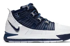Today, Nike released the LeBron 16 "SuperBron" which was a remix of the original LeBron 3 "Superman" PE. The LeBron 16 version has blue patent leather on the bottom with a white battle knit upper. There are also hints of yellow and red on the midsole and outsole. The Lebron 3 "SuperBron" that is being released to the public will have a slight change up in the color scheme. Nike is swapping out the blue patent leather for red, while the white midsole contains blue and yellow highlights and a red outsole.