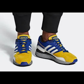 Vegeta's sneaker collab comes in the form of an Adidas Ultra Tech built on a Collegiate Royal/Bold Gold colorway. The ribbed toe box serves as a nod to Vegeta's yellow armor, while the "Over 9000" text on the heel pays homage to his well known catchphrase. Majin Buu's sneaker, which you can check out here, takes shape in the form of a pink Adidas Kamanda.