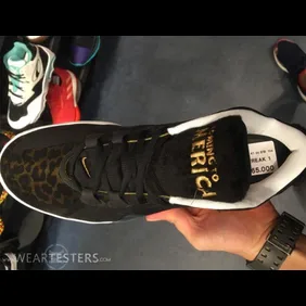 The design is inspired by Eddie Murphy's get up on the on the film’s poster, and even includes "Coming To America" in gold on the tongue. Hits of white appear on the midsole and inner lining while a gold Nike swoosh and a gold speckled translucent outsole round out the look.