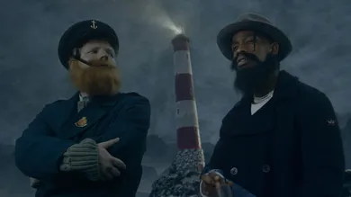 It all starts out with Ed putting on a hat before slowly turning around and revealing his face paint, creepily voicing his lyrics. Then, we move onto a dinner banquet where the singer sits at a table by himself, holding a small dog in his lap with big, curly hair. He smokes a little and shoos away anybody that approaches him. At that point, we know we're in for a full-on costume fest. Scenes include skits from The Shopping Channel, La Flame and Ed as sailors, and a trip to Mars.