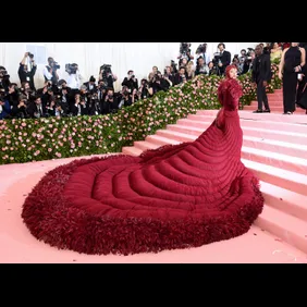 Bronx rapper Cardi B is known for having an over-the-top personality, being accused of "doing the most" by both fans and critics, so she paired that energy with high fashion on Monday at the Met Gala in New York City. The 26-year-old "Clout" rapper stunted on the red carpet wearing a maroon Thom Browne gown that featured a jeweled headpiece, a shapely bodice, and a show-stopping cascading feathery train. She's already being hailed as one of the best-dressed celebrities of the evening, and when Liza Koshy interviewed Cardi for Vogue, the artist shared details about the concept of her dress.