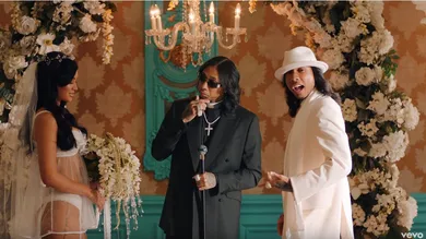 Less than 24 hours after dropping the summer jam "Bop," Tyga reunites with Blueface and YG for the song's music video. The visual takes place in a Great Gatsby-inspired underground club called "The Bop" where the three men are surrounded by booty-shaking women looking for attention. YG enjoys his time in a hot tub with a few ladies while Blueface is front row and center to watch pole tricks by exotic dancers. Tyga, on the other hand, played the role of both minister and almost-husband as he stands at the altar preparing to exchange "I dos" with his half-naked bop bride. Press and curl in full effect.
