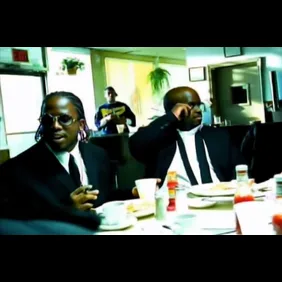 Seeming to borrow bits from "Reservoir Dogs" (the meeting around the table in a diner) and "Pulp Fiction" (André writhing around in the backseat of a car, apparently shot), the Dungeon Family crew put together a video as intriguing as all of their tongue-twisting verses. Big Gipp also deserves some credit for his performance in "Watch for the Hook," as his look and rapping style can be seen as direct influences on a younger rapper from Atlanta: Trinidad James.
