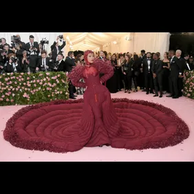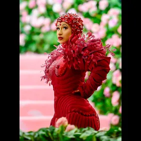 Cardi B truly stunned on the pink carpet of last night's Met Gala. The "Get Up 10" music maker wore a Thom Browne-designed gown with 44-carat rubies on each nipple. According to XXL, each crafted jewel (by jewelry designer Corina Mihaila Larpin’s luxe jewelry brand Stefere) was $250,000 each. "If I lose one of these, I'm gonna have to sell one of my Birkin bags," Cardi said of the detailed design.