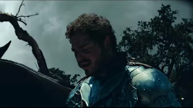 The "Circles" video stars Post Malone playing the knight in shining armor in a grey and grim fairytale. It begins with him as the sole survivor of a deadly battle, bodies scattered all around him. He then passes through a devastated village where the love interest appears. Mythical elements enter this fable with swirling waters, waddling zombies and Rapunzel motifs. After he climbs a tree via his lover's long locks, he rides off on a horse with her through the dark of night. All in all, the video boasts high-quality production and some pretty shots, but leaves more to be desired with its bland and over-worn storyline.