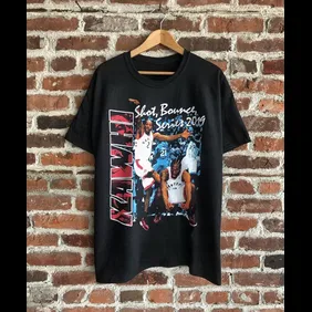 The limited edition t-shirts are in collaboration with vintage and used clothing brand Frankie Collective. The classic looks feature players Kawhi Leonard, Kyle Lowry, Serge Ibaka, Pascal Siakam, and Fred VanVleet on the front. While the shirts are unfortunately sold out online, Toronto's F AS IN FRANK vintage shop are selling the shirts while supplies last.