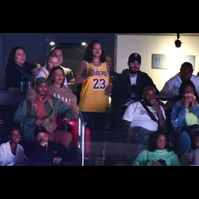Instead of sitting front row and courtside, the two cheered LeBron on from a private suite with some of Rihanna’s closest friends. RiRi rocked a home LeBron James jersey, while Hassan sat alongside her in a black baseball cap and could be seen smiling while Rihanna passionately cheered on the Lakers.