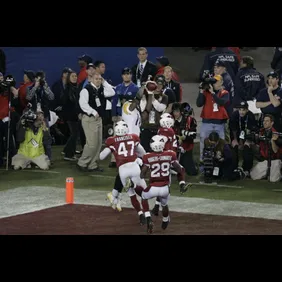 Arizona Cardinals fans will tell you that Holmes' right toe never really dragged the ground, but we're not here to put the play under a microscope. The call on the field was a touchdown and it was possibly the sweetest touchdown catch of all time, especially when you consider the circumstances.