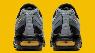 As you'd expect from any Batman-themed sneaker, the Air Max 95s come equipped with a predominately black build, highlighted by some Gotham grey detailing and yellow accents on the tongue, Nike swoosh and Air Max unit.