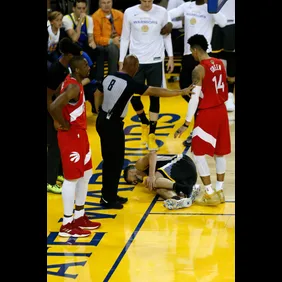 You can tell by the look on Klay Thompson's face that the pain he endured was excruciating. During Game 6 of the NBA Finals with 2:22 left in the third quarter, Thompson was fouled by the Toronto Raptors' Danny Green. During the hustle, the 29-year-old made an awkward landing during a breakaway dunk attempt. His immediate reaction was to grab his leg, but as the pain accelerated, Thompson rolled over onto his belly in a vain effort to find comfort.