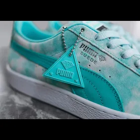 PUMA and Diamond Supply have teamed up for a collaborative sneaker and apparel collection featuring three PUMA staples including the Cali-0, Suede and Clyde. Picking up where they left off from their successful collection one year ago, the SS19 collection fuses classic PUMA heritage silhouettes with Diamond Supply’s iconic logo and signature Diamond blue color way.