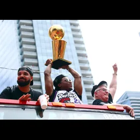 Drake was front and center during today's Raptors parade that took over the city streets of Toronto in celebration of the team's historical NBA Championship. Drake, the team and all of the league's affiliates cruised through the streets on top of a double-decker bus, before coming together at Nathan Phillip's Square where speeches were held with the winning team.