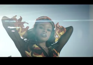 Now she returns with a video for the (quite literally) metallic-sounding track. In it, we see her tied up and being rescued by a gang of motocross racers before she dons some flamboyant biker gear herself and flaunts around with a pair of pit bulls.