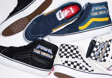 Each of the three sneakers feature a premium suede and canvas upper with an embroidered "Fuck The World" graphic on the ankle collar, leather lining, and the familiar vulcanized waffle outsole.