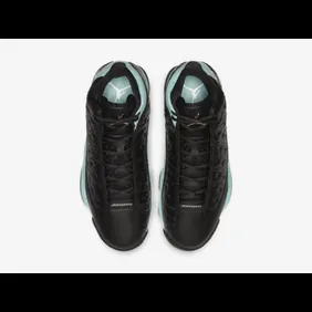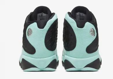 The "Island Green" 13s are highlighted by a textured black leather upper, accompanied by suede "Island Green" overlays in all the familiar places. The kicks also come equipped with chrome detailing on the Jumpman logos on the tongue as well as a "23" badge in place of the traditional hologram on the outer ankle. Overall, the color scheme is reminiscent of the iconic Tiffany Nike SB Dunks.