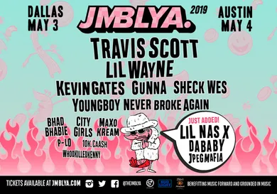 Earlier this year, the 2019 edition of JMBLYA unveiled a star-studded lineup, including Travis Scott, Lil Wayne, Kevin Gates, Gunna, Sheck Wes, YoungBoy Never Broke Again, Bhad Bhabie, Lil Nas X, DaBaby, JPEGMAFIA, City Girls, Maxo Kream, and more. Now, with the festival set to go down on May 3rd and 4th in Dallas and Austin respectively, we're pleased to announce our official JMBLYA GIVEAWAY!