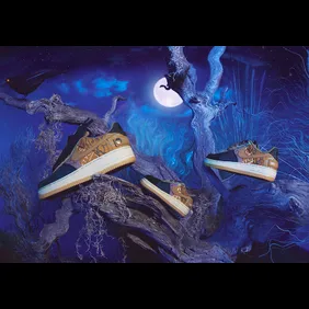 Styled just like the classic "Black Cat" colorway, the entire silhouette is outfitted in black with glossy black detailing appearing on the plastic wings that secure the laces, and matching black "Nike Air" logos on the heels. Of course, the hairy upper steals the show on this one.