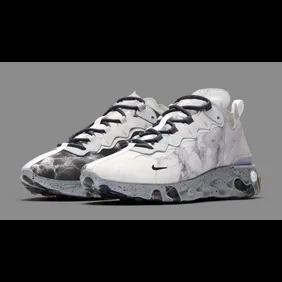 The collaborative kicks come equipped with a marbled design, split between a white outer half and a black inner half. Additional details include black laces and a grey speckled React cushioning unit beneath it all.