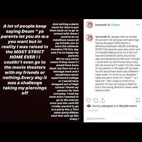She added in her caption: "I always told my stories tho so don’t let pictures with piercings fool ya. Anyways KIDS there’s a difference between ABUSE and being STRICT.My parents were very strict and I’m thankful. Being strict it’s a form of love and protection. Girls around my age were growing too fast and I though I could fool my momma but boy o boy she be knowing."