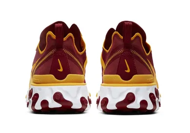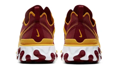 As you'd expect from a USC-themed sneaker, the kicks come decked out in cardinal red while gold handles the laces, eyestay, Nike Swoosh and detailing around the heel and ankle collar. As always, the React Element 55 is grounded by Nike's super comfortable React cushioning, which comes in white with splashes of cardinal and gold to complete the look.