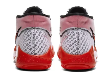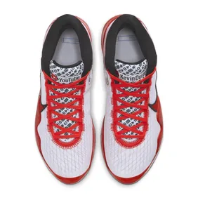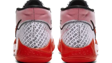 The kicks are highlighted by red YouTube-inspired detailing throughout, including the laces, Swoosh and a glossy finish on the midsole. Additionally, the KD12s feature a swarm of video player icons running down the length of the tongue and heel, with "YouTube" and "Kevin Durant" text on the tongue and search bar inspired insoles to round out the look.
